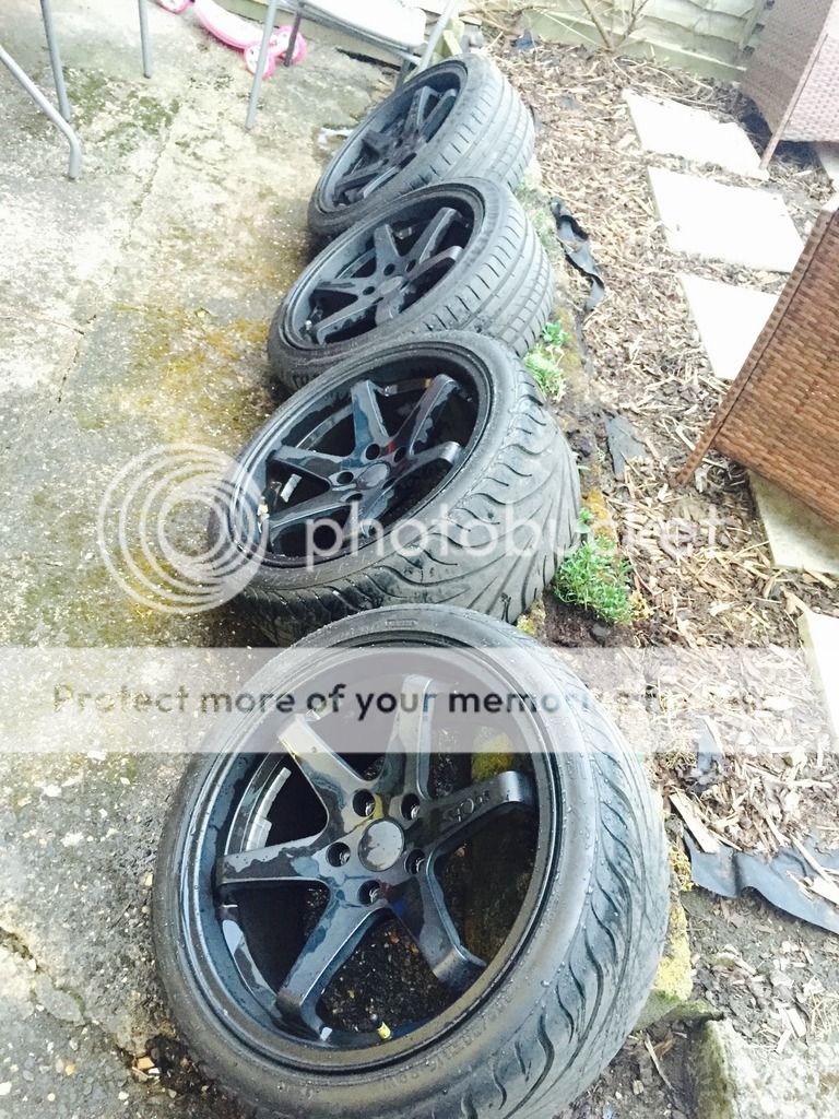 Hi,taken these wheels off my current skyline r34.all are in good nick, one has a slight kerb mark but nothing major.Fronts are 18x8.5j et15 with Eagle F1 tyres which have **** loads of meat left (cost £200)Rears are 18x9.5j et30 with pretty much brand new federal rsr tyres (cost £180)I want £650 for everything, so take off the tyre cost that £270 for a nice set of wheels :p Thanks